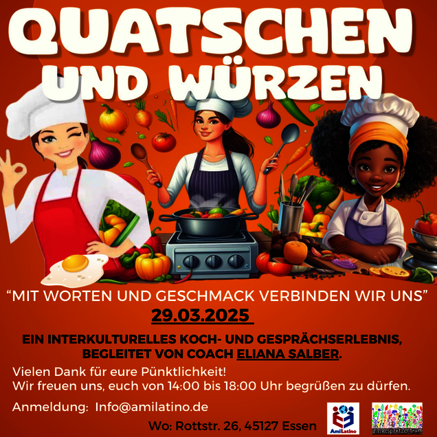 Ja, wir treffen uns in der Küche, um gemeinsam zu kochen und dabei ein bereicherndes Gespräch mit unserer interkulturellen Coach Eliana Salber zu führen. Anschließend setzen wir uns zusammen und genießen das köstliche Menü, das wir zubereitet haben.